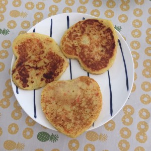 热锅冷油,中小火加热,不用模具可以烙成一整张,吃的时候切开。不要太厚,不容易熟。一面成型后翻面烙。怕不熟可以用筷子扎扎看。