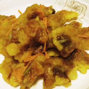 把料酒,白糖,柠檬汁,淀粉水,酱油,胡萝卜丝,葱丝倒入容器中,拌匀。锅内留少许油,倒入调汁和炸好的肉,大火翻炒几下(如果会掂勺,就更好了,掂几下让炸肉上挂满调汁即可)。