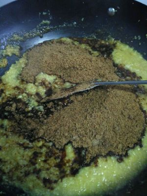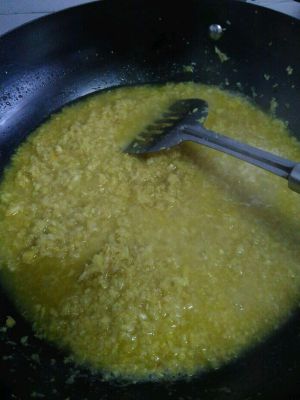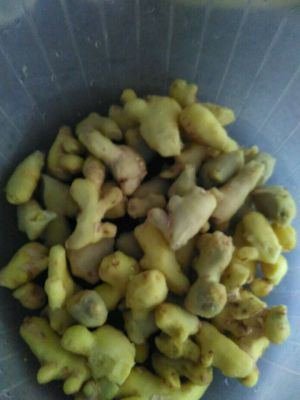 锅烧热放油(用茶油最好),不要用动物油哦!油热后倒入姜末,小火炒熟,注意不要炒焦