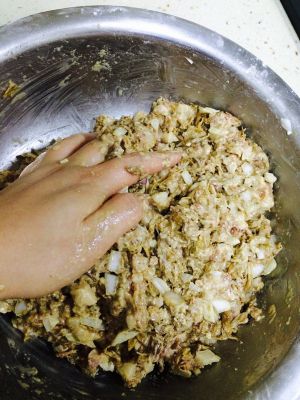 用手顺时针搅拌均匀,直至肉馅形成粘稠的胶状即可;