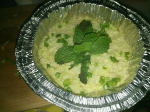 然后放入锅里的蒸架上,这儿我用的是电饭锅,嘿嘿。等上个十来分钟,就可以出锅了,然后放点葱花,和薄荷点缀一下。这样就可以了。
