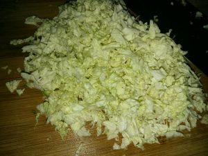 先把白菜去杆,只要叶子,切碎,越碎越好