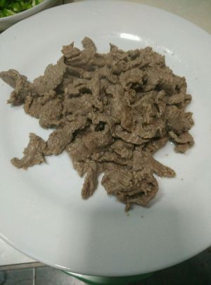 第一,先把牛肉切片备用,再把其他配料切碎待用。