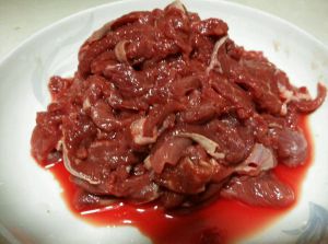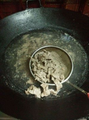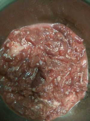 第二,掺牛肉,这是最关键的一步…牛肉加一点点盐,少许豆粉,鸡精,味精,少量的清水…然后用力掺牛肉,大概要用3至5分钟……使牛肉与水完全融合,感觉牛肉很嫩很嫩就对了!