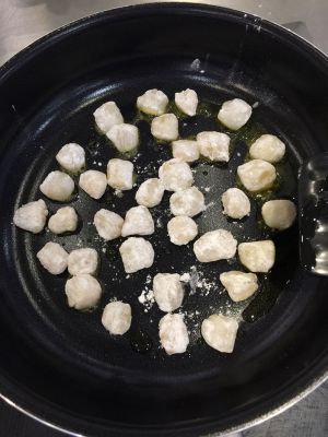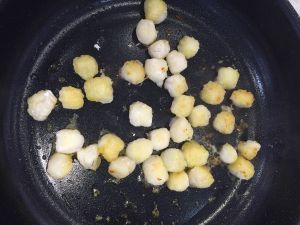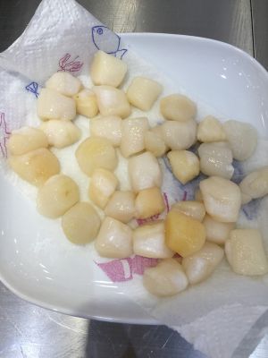 放入煎过的带子.煮一到两分钟.淋上香醋.注意不要用力翻炒.