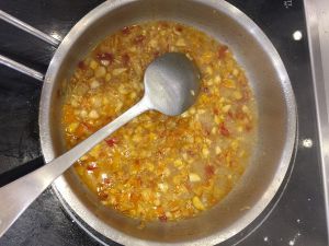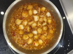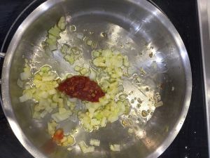 加入半勺蒜蓉辣酱.半勺番茄酱翻炒出香味