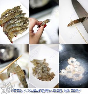 新鲜活虾去皮去虾线,拨成虾仁备用。