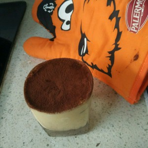 手指饼干在咖啡中沾一下,放入杯底,加入奶糊,再铺一层手指饼干,再加奶糊,刮刀在杯口刮平,撒上可可粉。放冰箱冷藏半天。