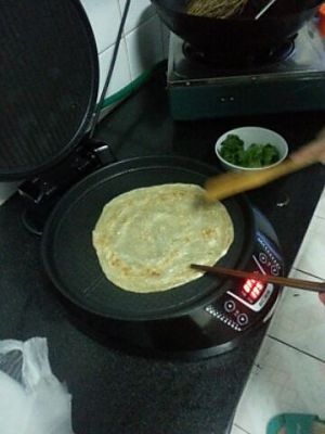 把买好的饼煎熟 饼自身带油 无需再刷油