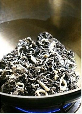 这样反复三次,最后再次百叶彻底冲洗干净,沥去水分。