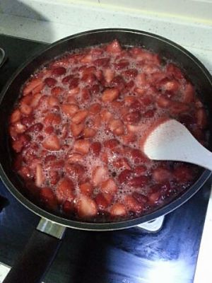 改小火慢慢熬制成粘稠,加入柠檬汁,继续小火熬制。