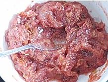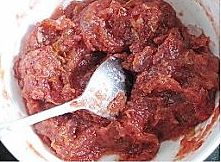 用勺子把山楂碾碎,加入适量冰糖搅拌;