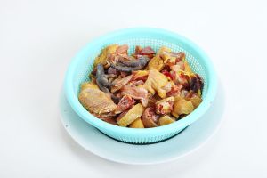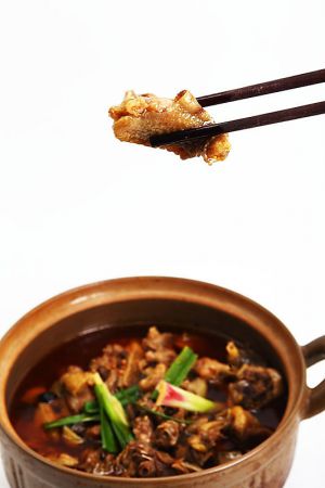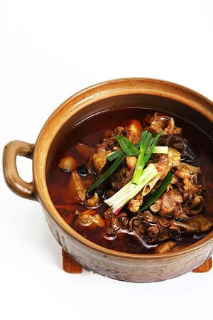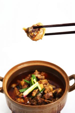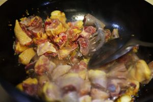蒜瓣/生姜/一些菜男百味香放进去炒香后 放入鸡块翻炒,烹入料酒/醋,等鸡的水分蒸发干了后就放入开水大火烧开改小火焖,盖上锅盖,一次放足水,中途不要开锅盖