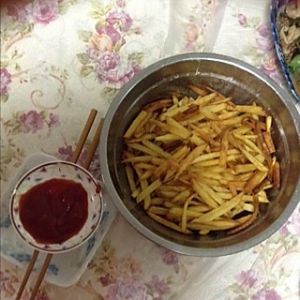 锅里放油,在放入1小勺盐(炸的时候防止油溅出来),油7成熟后放入薯条,第一遍炸至薯条表面金黄捞出,再炸第二遍炸至表面微焦。捞出来沥沥油就可以了。