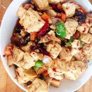 我用了两小块豆腐,胡萝卜半根,青椒,洋葱各四分之一个