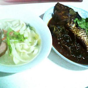 留适量的鱼汤,出锅!手机照出来是黑红的,本尊可一点不黑!