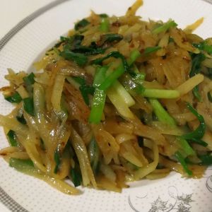 然后加入韭菜段翻炒,加入白糖1小勺,一大勺酱油,适量盐;