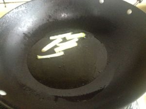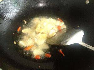 将姜、蒜,红辣椒放入爆香的葱油中。
