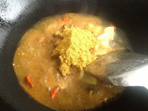 放入咖喱粉,并将火调小。