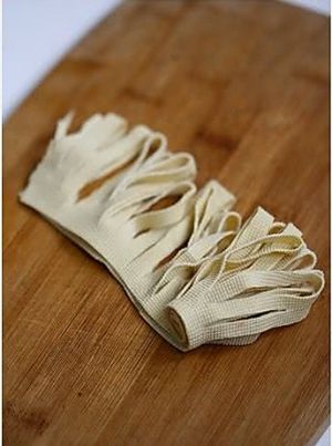 将豆皮切成长方形,依图对折