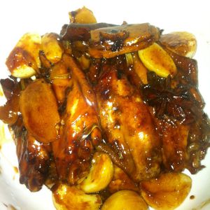 腌好鸡翅后,锅烧热,下少量油,三成热后调小火,下腌好的姜片、蒜瓣,下八角、桂皮,翻炒至出香味,将鸡翅一个个入锅,煎至俩面金黄,并且尽量把鸡翅侧面也煎黄。