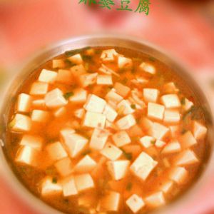 锅内放少许油,把姜和豆瓣酱放入煸炒,待豆瓣酱出红油后放入猪瘦肉沫翻炒片刻,然后加入高汤,接着放入豆腐,盖锅盖闷一分钟。