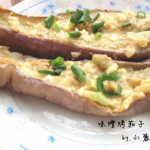 茄子拿出,放在烤盘上,抹上味增汁,撒上芝麻,放进烤箱