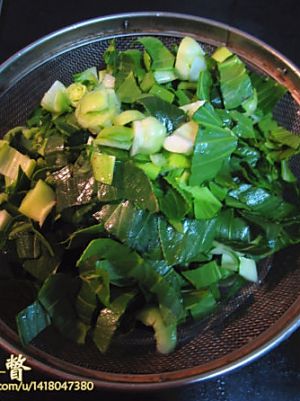 坐锅热油,油比平常炒菜稍多些,放青菜炒至断生,放些盐。