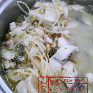 酸菜红辣椒油锅煸炒一下,倒入鱼汤中,放两个泡椒(我喜欢微辣,放的少)加入豆芽、豆腐小火炖会,
