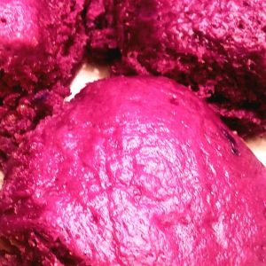 制作紫薯面,上述食材除盐外一次加入厨师机搅拌,3~5分钟后,加盐(无需再加水);醒发;