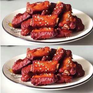 撒上白芝麻。一盘好吃诱人的红烧排骨就做好了。