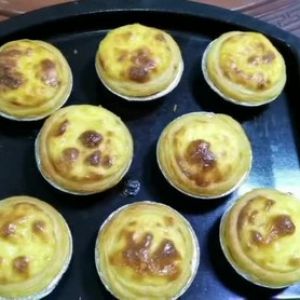 烤箱170度预热五分钟。放进烤箱,170度,上下火,30-35分钟(看蛋挞皮表面颜色。)
