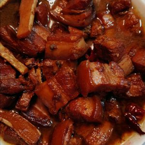 纯瘦肉的红烧不好吃。我是切下来剁碎,和鸡蛋葱花一起炒,为晚餐加菜。