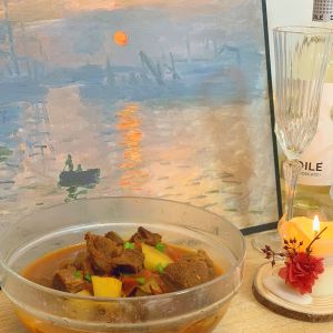 3.油热三成下冰糖,小火划开后倒入你牛腩上色
