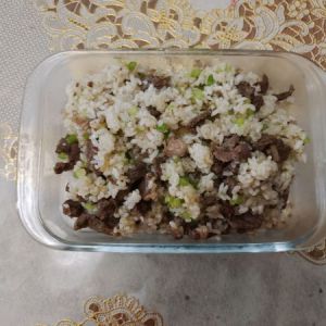 芹菜切沫备用,羊里脊切小片,放入适量酱油、盐、蚝油,加入孜然粉、油拌勻,腌制备用。