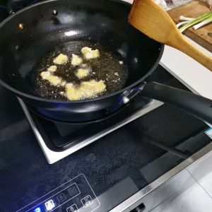 炒到亮油后,开小火继续爆