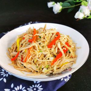 将熟鸡丝倒入大碗中,再将所有辅料和调味料倒在鸡丝上,搅拌均匀即可。