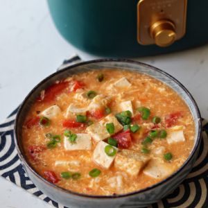 1. 豆腐切成小块,放入生活元素蒸煮锅中煎至金黄色