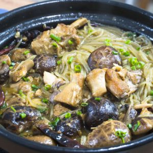 撒上葱花就是热乎乎的一大锅,好吃又下饭。蘑菇的鲜美、鸡肉的香醇粉条香浓爽滑,融和在一起香气就更加浓郁了,让舌尖欢愉起来,让身体暖和起来......这道菜太适合现在吃了,喜欢就赶紧试试吧!