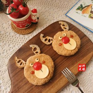 芝士片压不同大小的圆形做眼睛和嘴巴。