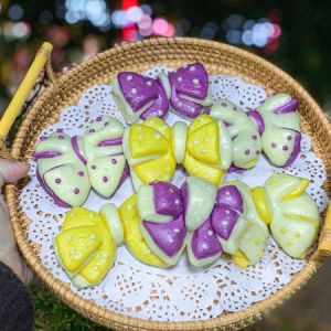 上面再点缀点小圆球装饰,放蒸格里发酵,冬天太冷了,我在下面放了热水这样容易发酵