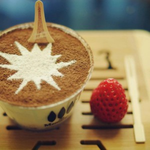 食用前筛入可可粉,要想漂亮的话选择各式的模具再筛入糖粉
