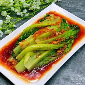 生菜过水一分钟即可装盘备用;