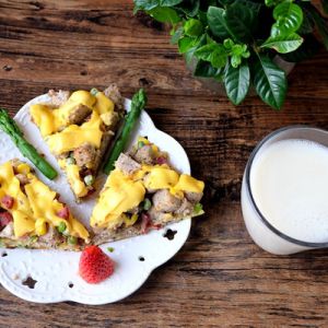 两分钟左右,等蛋液完全凝固芝士片融化即可出锅。我拍图前把表面的芝士片又按碎了,显得多一些;