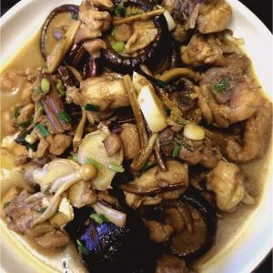 热锅下少量油,油温热后下切好的葱,姜,蒜,鸡肉炒一下。在放调料炒一下。