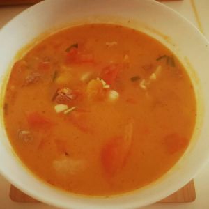 成品,因为没加番茄酱颜色不够红。但是味道真是好吃得一哔,汤鲜肉软,酸甜开胃。汤还可以泡饭吃哦!