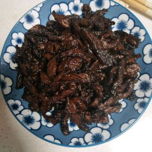 牛肉切丝,用料酒姜丝腌制一会儿备用