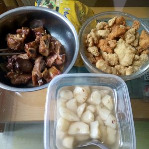 剩下一些油,一点点放鸡米花慢慢炸了,不浪费