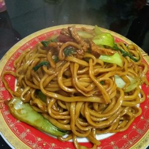 放入面条翻炒~加入适量的老抽调色,准备下一步