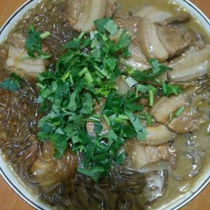 粉条透明色就好了 装入一个小的盆子里 放些香菜或者是小香葱就可以吃了